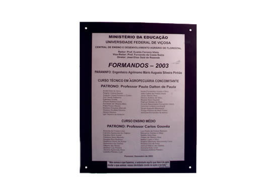 Placa feita de chapa de aço inox com corroção e fundo de chapa preta Código: MD5035